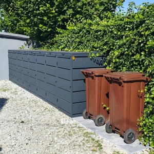Die QBOX Mülltonnenbox vereint modernes Design mit hoher Funktionalität. Sie sorgt für ein aufgeräumtes Erscheinungsbild, schützt die Mülltonne zuverlässig und fügt sich harmonisch in jede Umgebung ein.