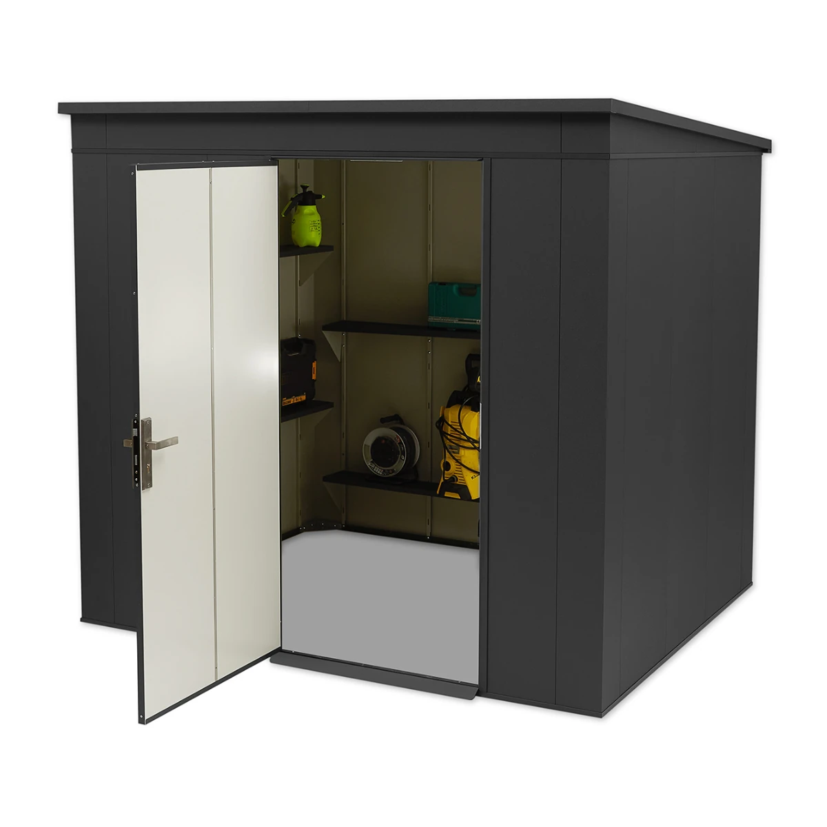 Moderner Geräteschuppen aus Stahl – 1,86 m x 1,86 m