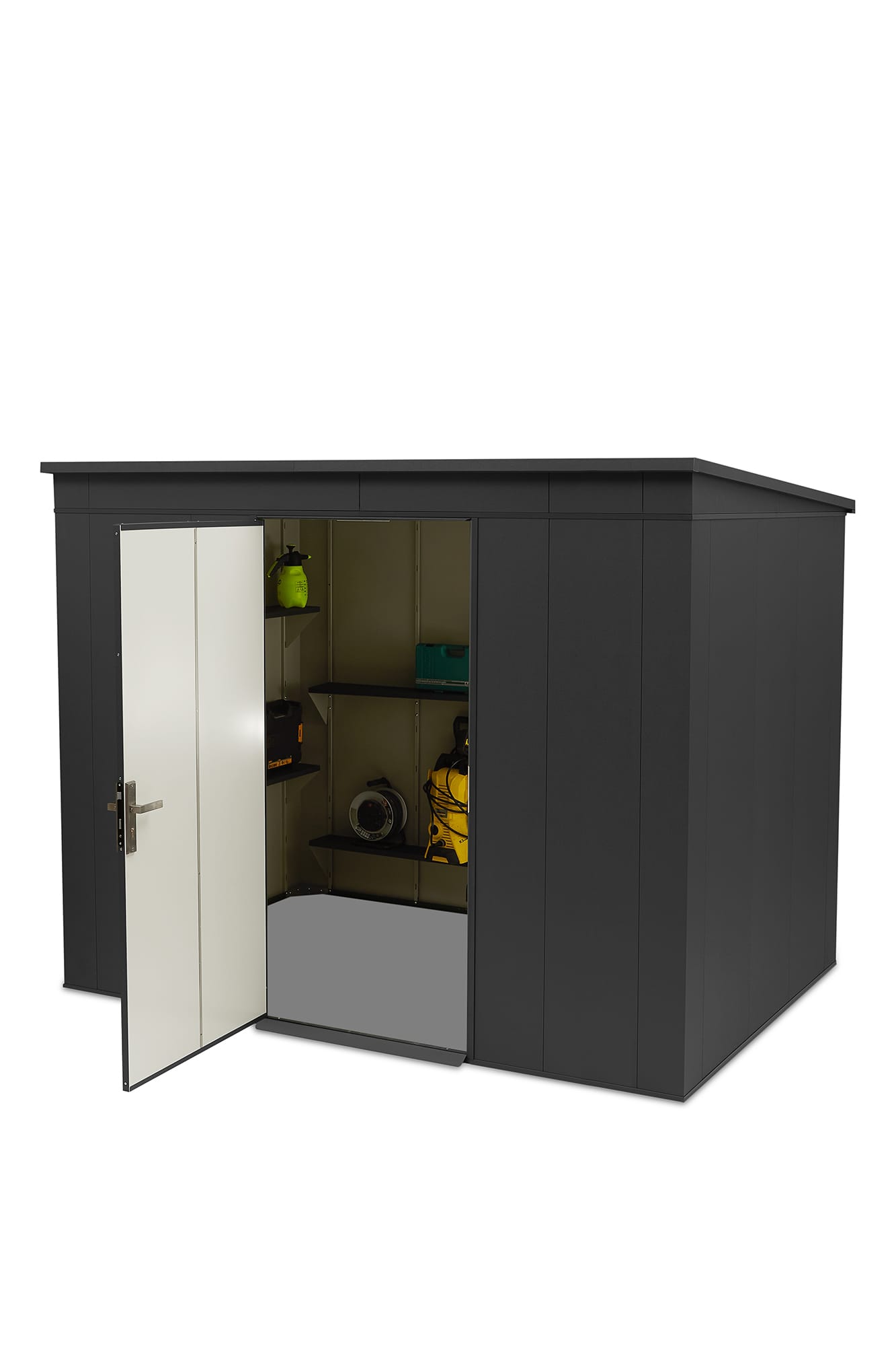 ✅ Modernes Design ✅ Abschließbarer Tür ✅ 3 x Einlegeböden im Lieferumfang ✅ Antikondensvlies in den Dachelementen ✅ Hergestellt in EU