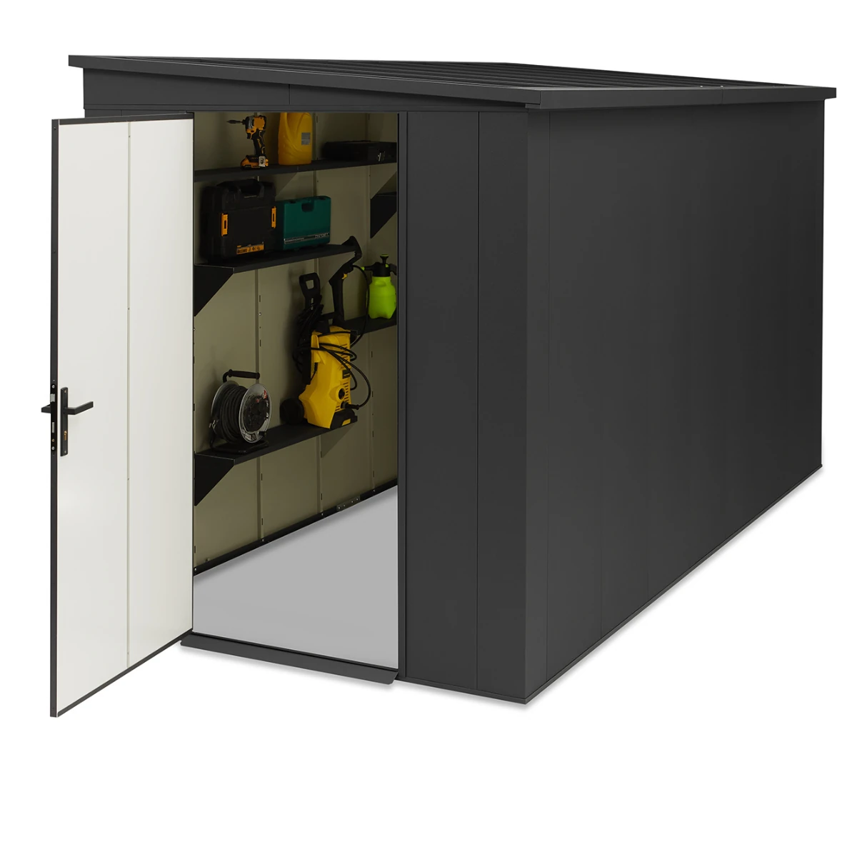 Unsere Geräteschuppen werden aus hochwertigen, feuerverzinkten Materialien hergestellt und unterliegt strengen Qualitätskontrollen in der EU. Deshalb bieten wir eine 10-jährige Garantie auf die Oberfläche. Unsere Geräteschuppen ist resistent gegen Korrosion, UV-Strahlung und Witterungseinflüsse.
