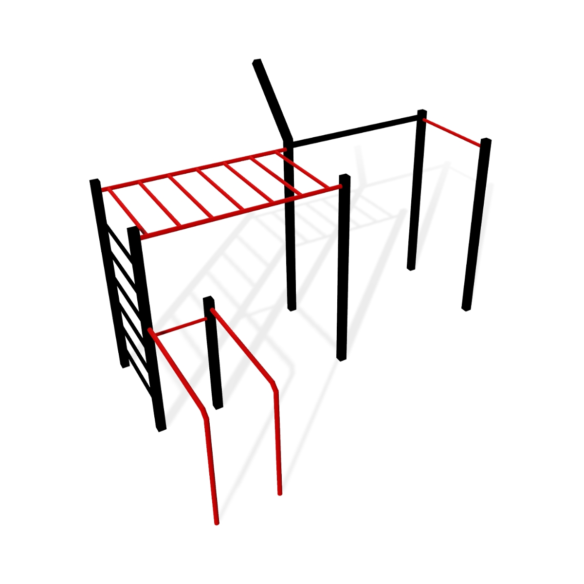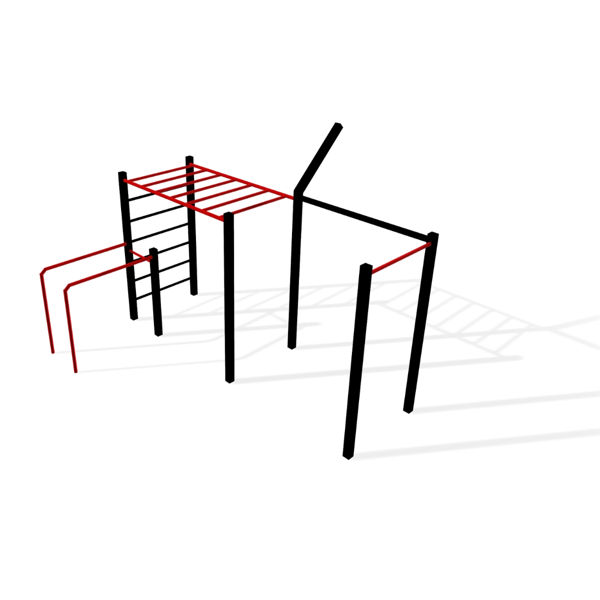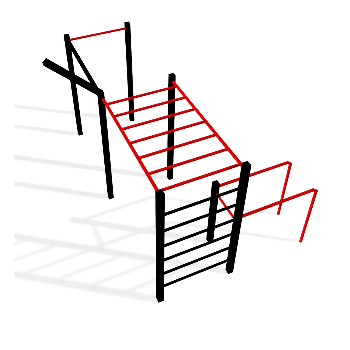 Die KraftZone Medium I ist eine kompakte Calisthenics-Anlage, die sich ideal für den Einsatz im privaten Garten eignet. Sie vereint verschiedene Trainingsmöglichkeiten wie Klimmzugstangen, Dip-Barren, eine Kletterleiter sowie zusätzliche Übungselemente und ermöglicht dadurch ein abwechslungsreiches Ganzkörpertraining. Optimal geeignet zur Steigerung von Kraft, Mobilität und funktioneller Fitness.