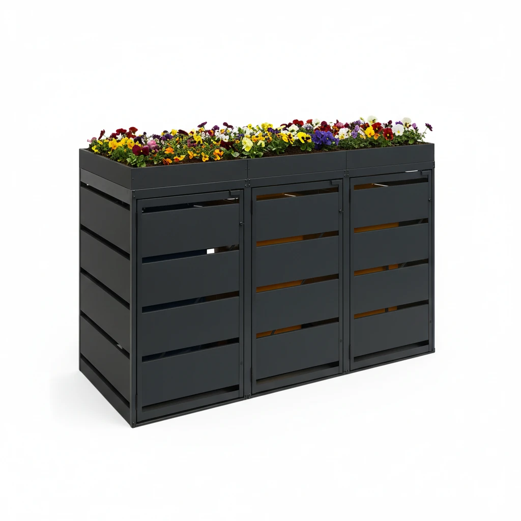 Mülltonnenbox 120 L mit Pflanzdach 3er – QBOX Flower – Mülltonnenverkleidung bepflanzbar