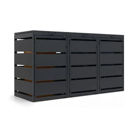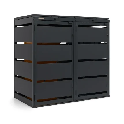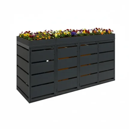 Die QBOX Mülltonnenbox für vier 240-Liter-Mülltonnen sorgt für Ordnung und zuverlässigen Schutz. Pulverbeschichtetes Stahlblech und wetterfeste Verarbeitung gewährleisten Langlebigkeit und Stabilität.