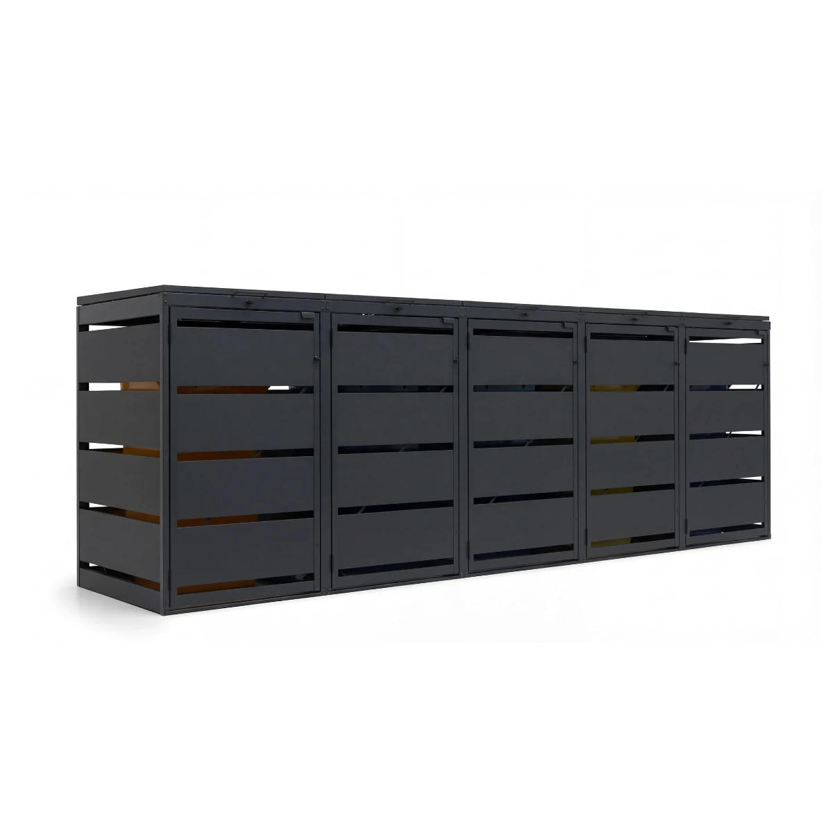 Mülltonnenbox 5er 120L – Stahl Verzinkt – Mülltonnenverkleidung Metall QBOX