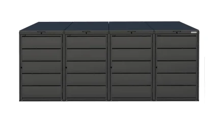 🛡️ 10 Jahre Herstellergarantie auf die Oberfläche 📦 Kostenloser Versand 💳 Ratenzahlung über PayPal und Klarna möglichMülltonnenbox aus Stahl – QBOX 4er 240 L