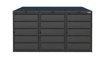 🛡️ 10 Jahre Herstellergarantie auf die Oberfläche 📦 Kostenloser Versand 💳 Ratenzahlung über PayPal und Klarna möglichMülltonnenbox aus Stahl – QBOX 3er 240 L
