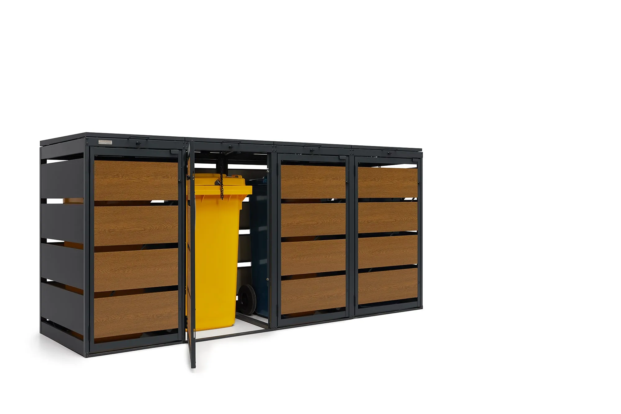 Mülltonnenbox Metall – QBOX 4er 240 L – Gold Oak