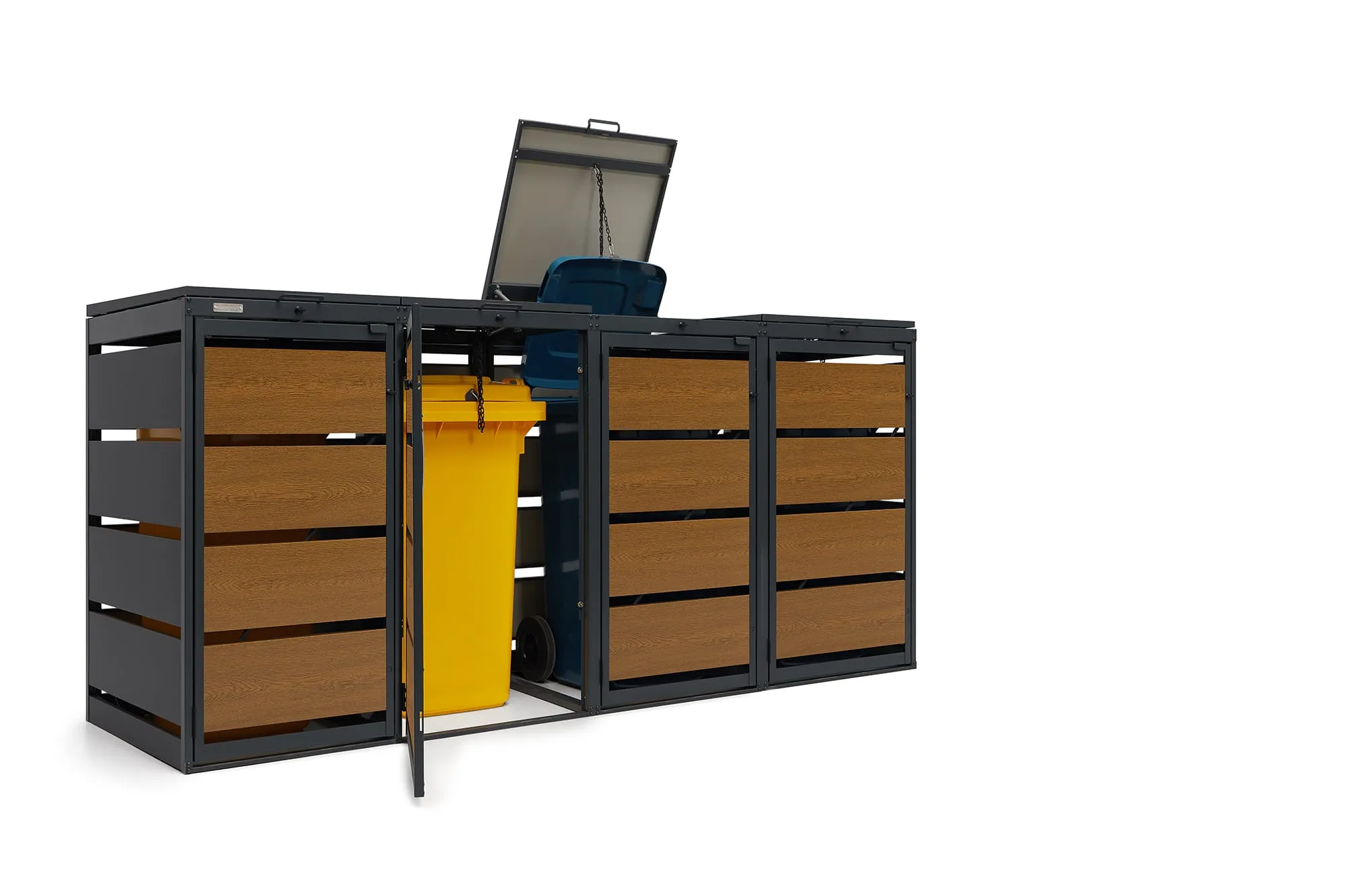 Jede Einheit ist mit einer eigenen Fronttür und einer einzeln klappbaren Abdeckung ausgestattet. Gasdruckfedern unterstützen das Öffnen und Halten der Deckel – ideal für den täglichen Einsatz.